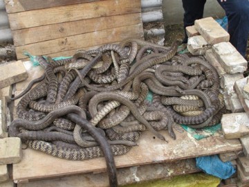 (4)益害为无毒蛇。其一次可食4~5只老鼠,一年能捕食上百只老鼠,是捕鼠能手。其肉、胆可食,也是优良的天然动物性药材。皮宽大而厚实,是制造皮制品的上等原材料。