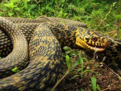 从进化的观点来看,毒蛇的毒牙和毒腺是适应更有效地 捕食活动物而发展起来的一种有毒器官。人们把具有毒牙和 毒腺的蛇叫做毒蛇。